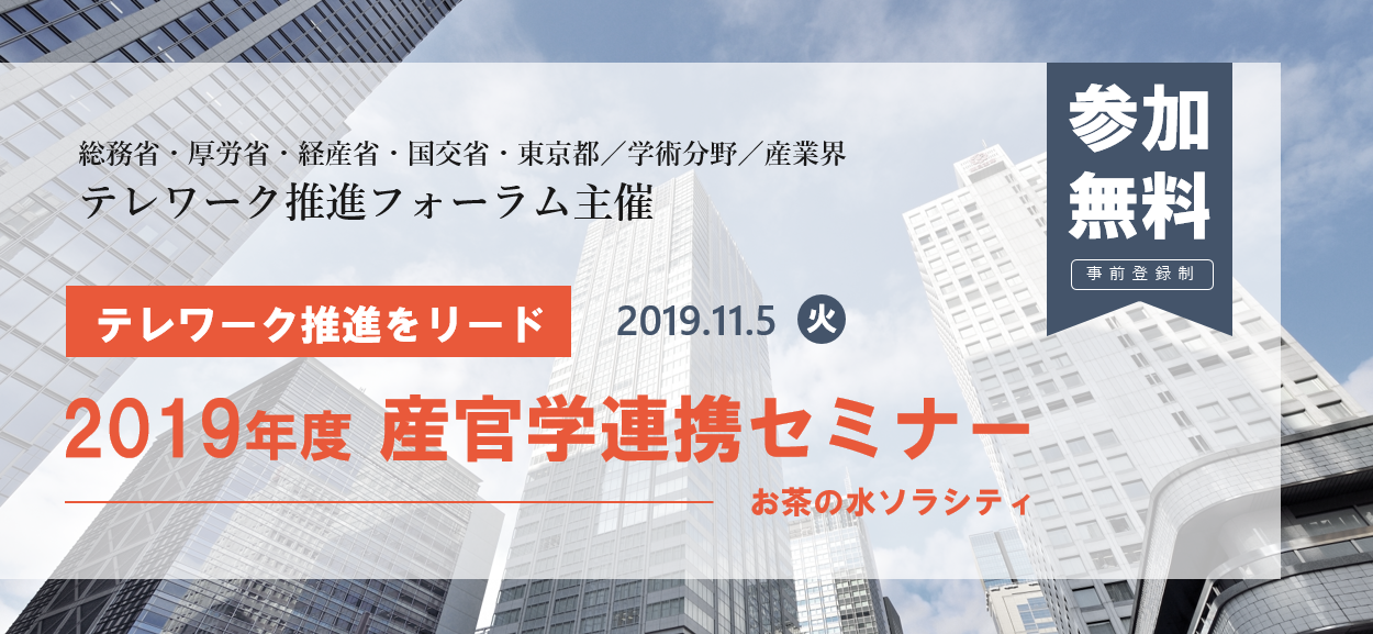 | イベント名称 | 【テレワーク推進をリード】2019年度 産官学連携セミナー |